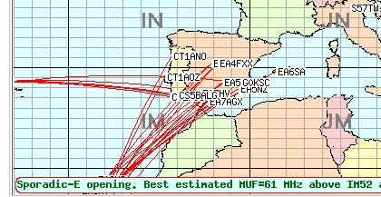 Pour finir sur ce contest, en soirée une ouverture ES a eu lieu, la dernière de l'année ?? peut-être bien, mais JN38 n'était pas concerné, seuls quelques OM du Nord de la France ont QSO avec les EA8, CN et CT.